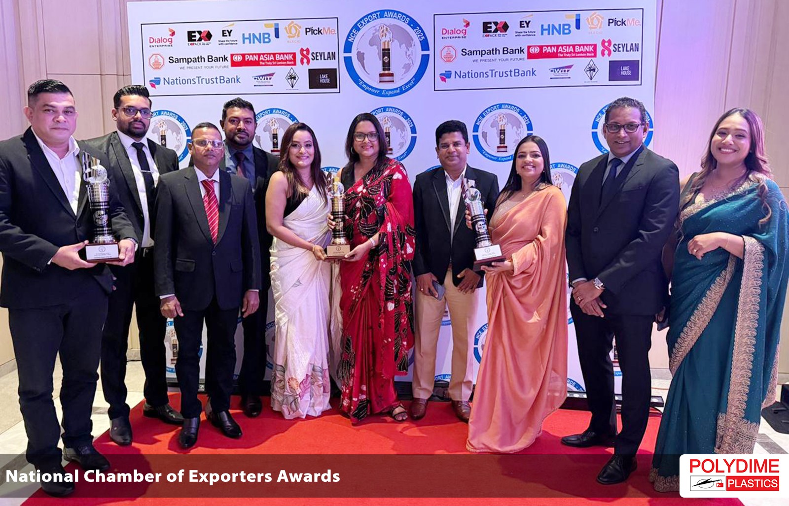 Polydime was felicitated amoungs some of the big names in the export industry when they won the AWARD in the category of manufacture of Packaging at the event hosted by the National Chamber of Exporters of Sri Lanka